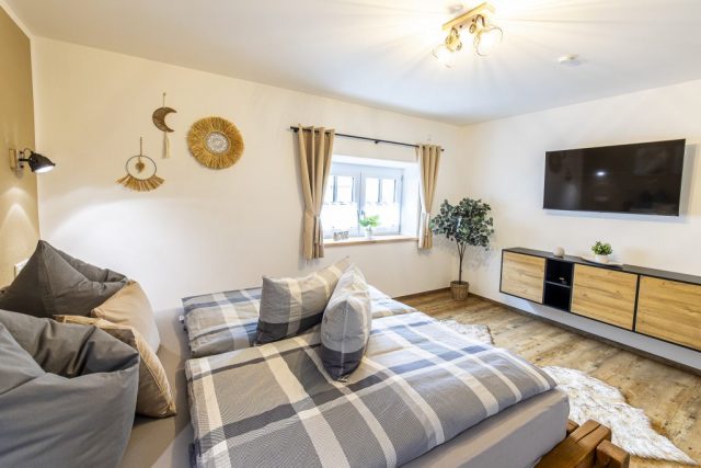 Willkommen in der Bahnhofs-Lodge – Ihrer großzügigen 90 m² großen Ferienwohnung mit eigenem privaten Spa-Bereich, stilvoller Ausstattung und viel Raum zum Durchatmen. Hier trifft moderner Komfort auf ländliche Ruhe – ideal für entspannte Tage zu zweit oder kleine Auszeiten zwischendurch.