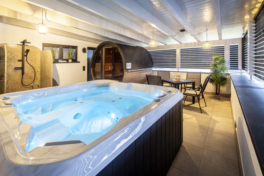 Mit Whirlpool, Sauna, Ruhebereich und Terrasse bleiben keine Wünsche offen!